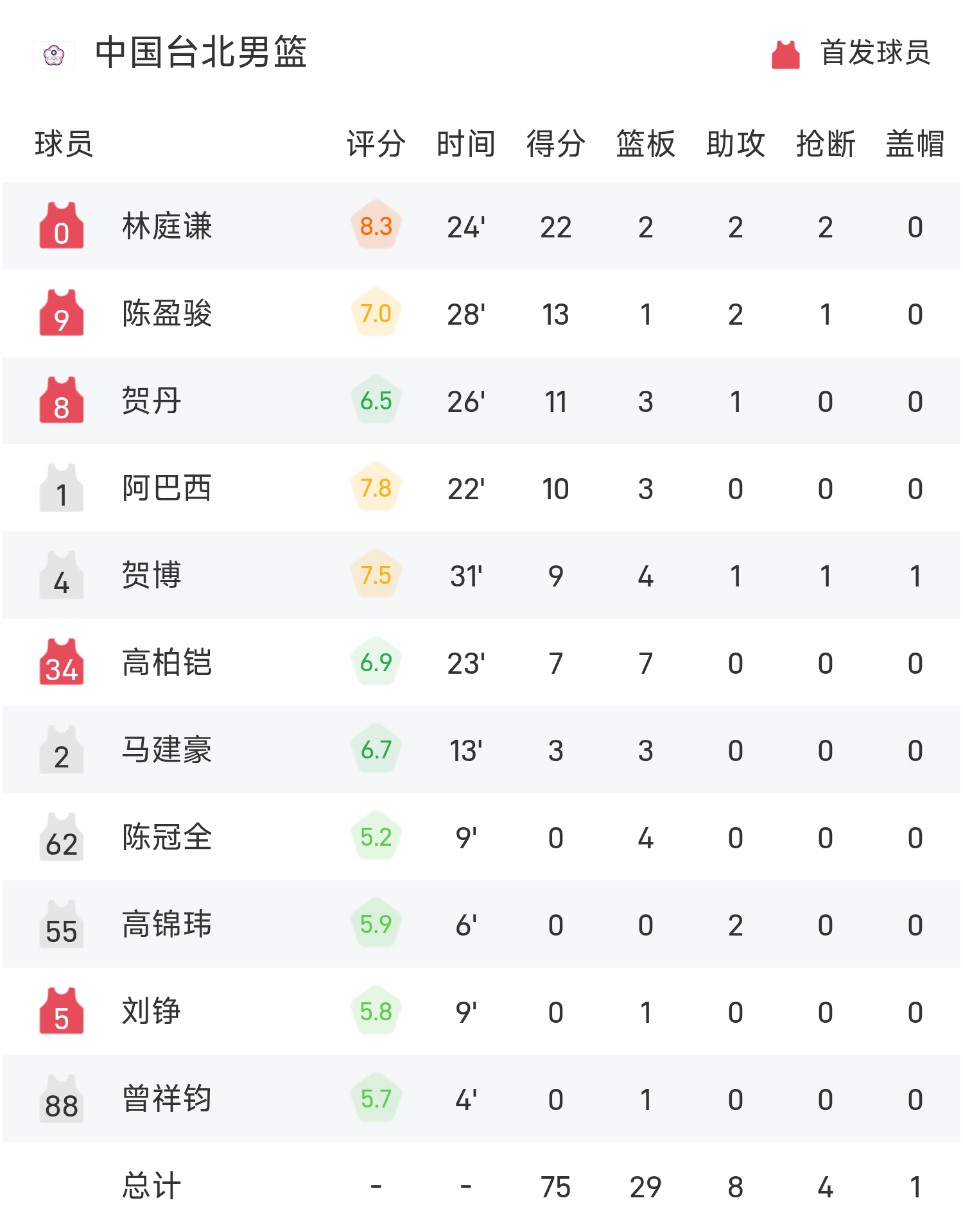 男篮亚洲杯激战:林庭谦22分难救主 阿米尼30+11率伊朗78-75险胜中国台北